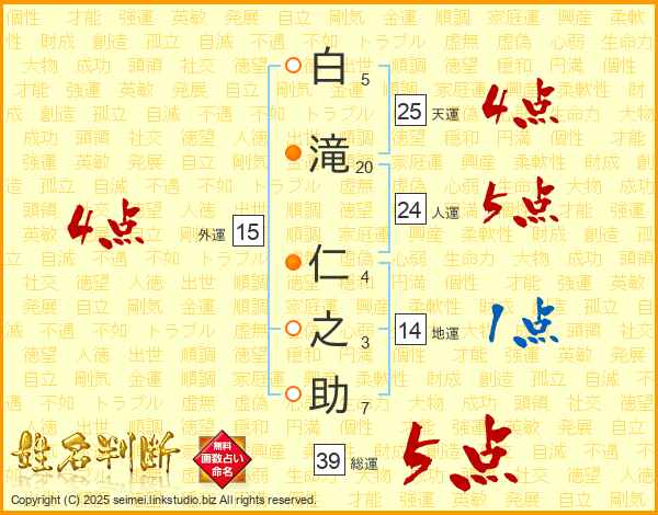 白(5画)滝(20画) 仁(4画)之(3画)助(7画)
