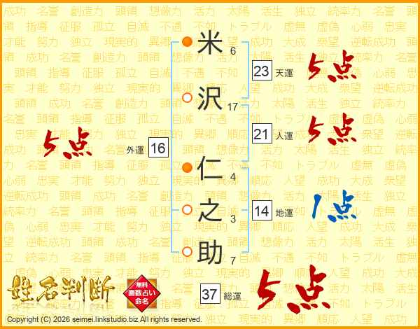 米沢仁之助さんの総運は37画の5点!