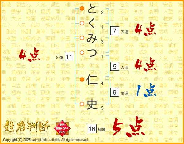 と(2画)く(1画)み(3画)つ(1画) 仁(4画)史(5画)