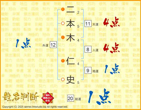 二本木仁史さんの天運は11画の4点!