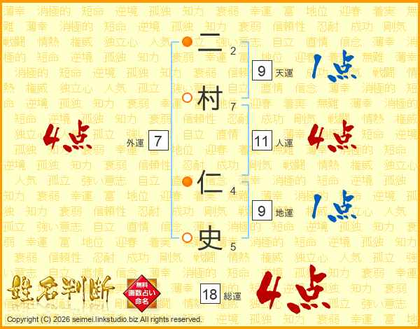 二村仁史さんの人運は11画の4点!