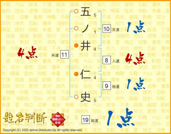 五(5画)ノ(1画)井(4画) 仁(4画)史(5画)