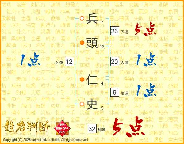兵(7画)頭(16画) 仁(4画)史(5画)