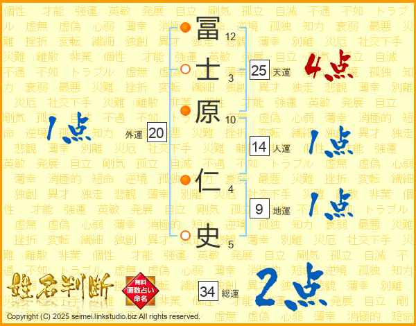 冨(12画)士(3画)原(10画) 仁(4画)史(5画)
