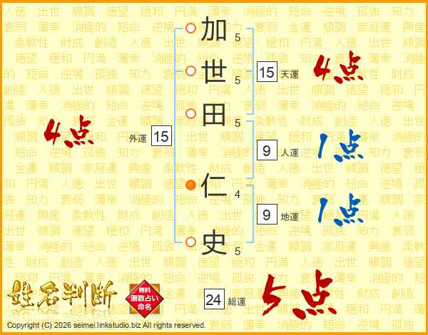 加世田仁史さんの総運は24画の5点!
