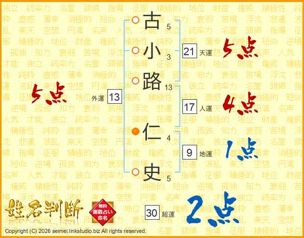 古小路仁史さんの総運は30画の2点!