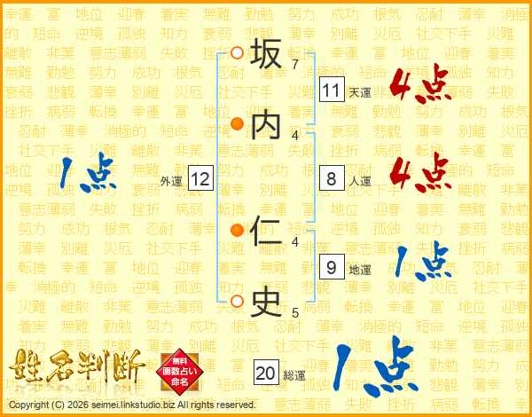 坂内仁史さんの天運は11画の4点!