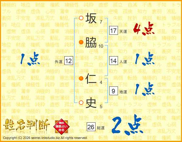 坂脇仁史さんの天運は17画の4点!