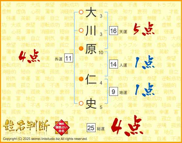 大川原仁史さんの人運は14画の1点!