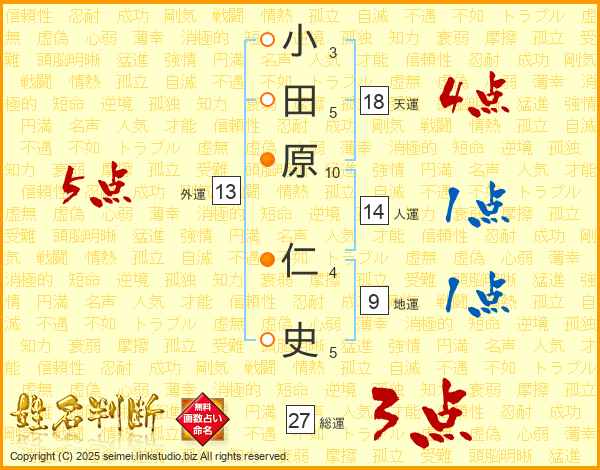 小田原仁史さんの天運は18画の4点!