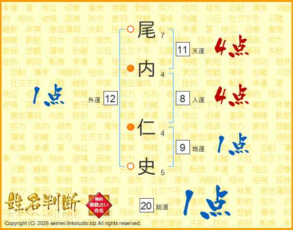 尾内仁史さんの天運は11画の4点!