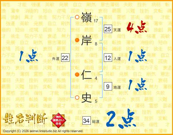 嶺岸仁史さんの天運は25画の4点!