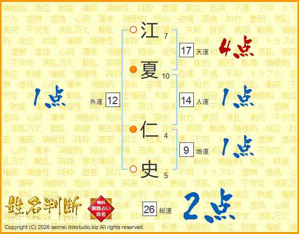 江夏仁史さんの総運は26画の2点!