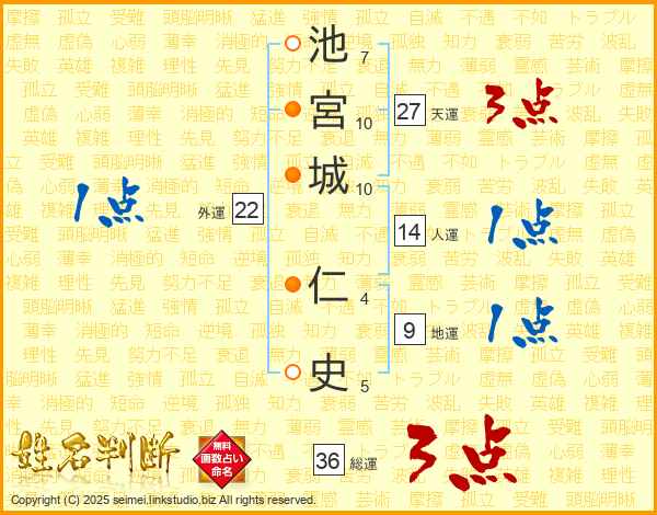 池(7画)宮(10画)城(10画) 仁(4画)史(5画)
