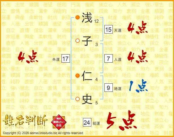 浅子仁史さんの総運は24画の5点!