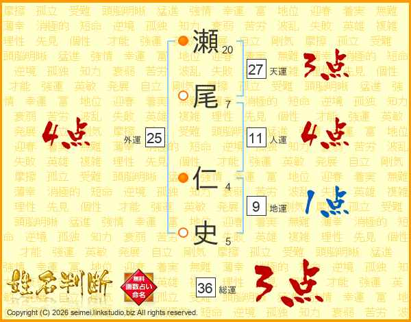 瀬尾仁史さんの人運は11画の4点!
