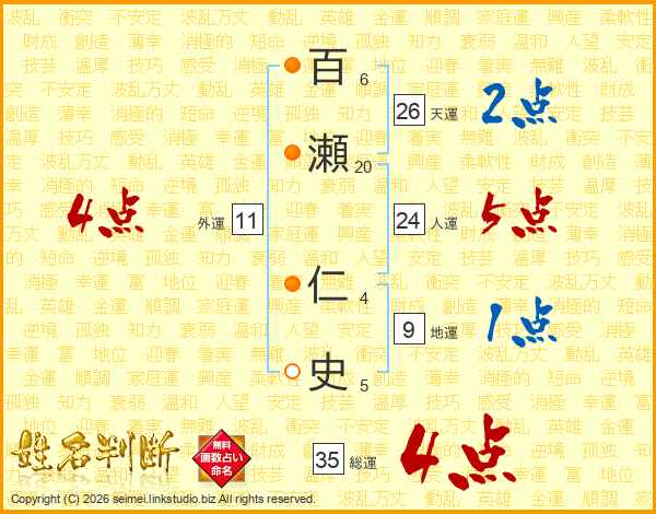 百(6画)瀬(20画) 仁(4画)史(5画)