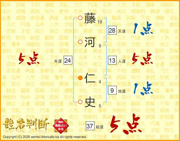 藤河仁史さんの総運は37画の5点!