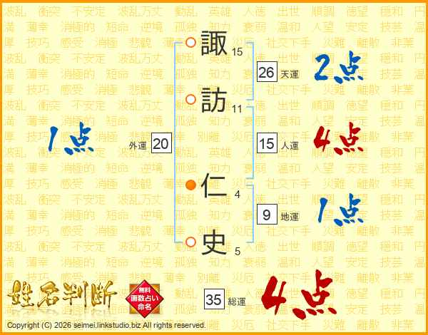 諏訪仁史さんの天運は26画の2点!