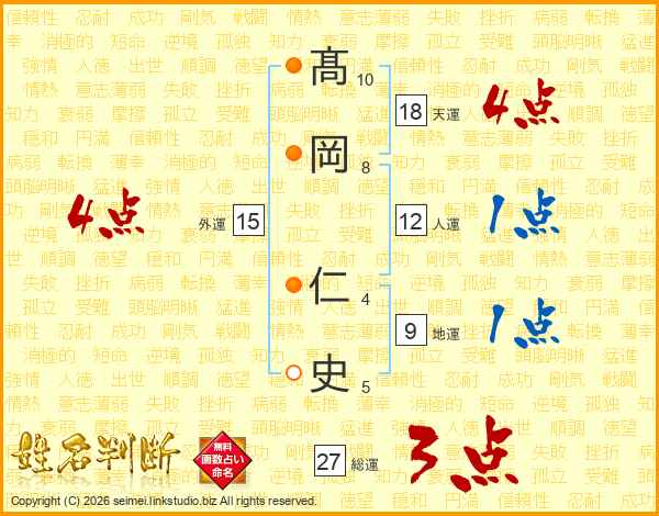 髙岡仁史さんの天運は18画の4点!