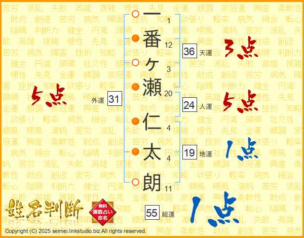 一番ヶ瀬仁太朗さんの外運は31画の5点!