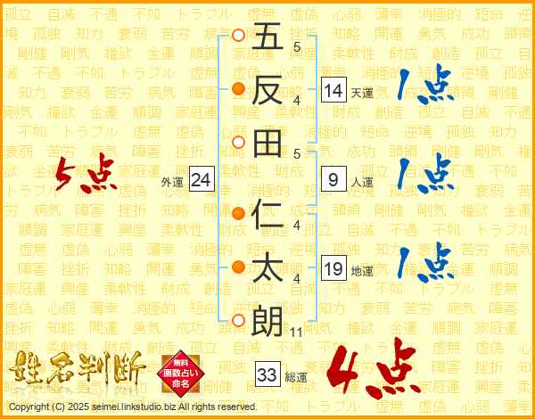 五反田仁太朗さんの総運は33画の4点!