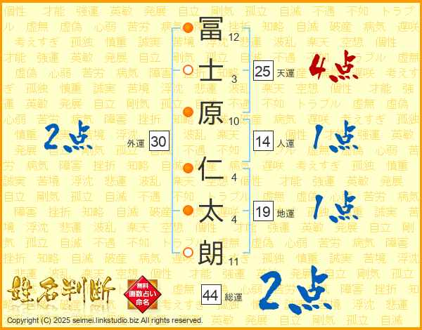 冨士原仁太朗さんの天運は25画の4点!