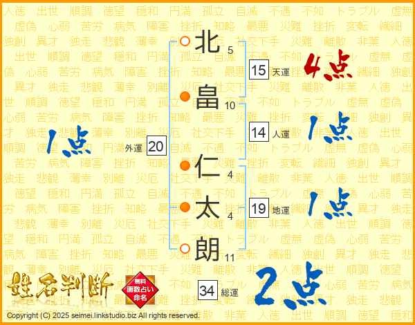 北畠仁太朗さんの天運は15画の4点!
