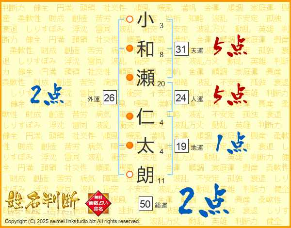 小和瀬仁太朗さんの天運は31画の5点!