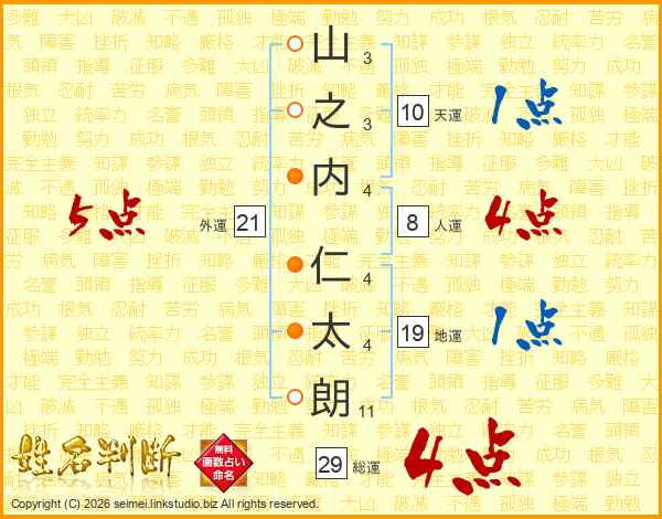 山之内仁太朗さんの総運は29画の4点!