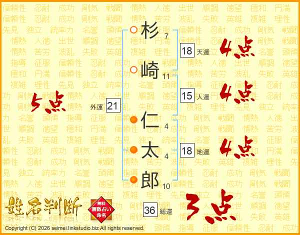 杉崎仁太郎さんの総運は36画の3点!