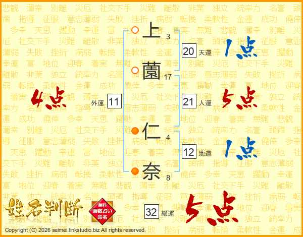 上薗仁奈さんの総運は32画の5点!