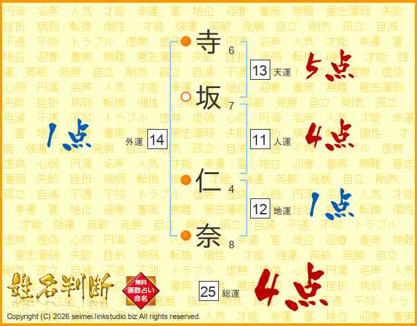 寺坂仁奈さんの総運は25画の4点!