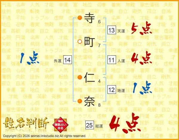 寺(6画)町(7画) 仁(4画)奈(8画)