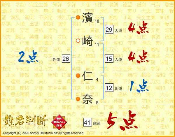 濱崎仁奈さんの総運は41画の5点!