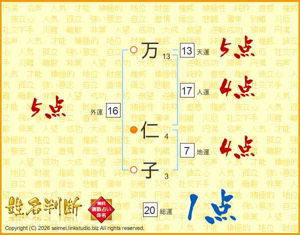 万仁子さんの総運は20画の1点!