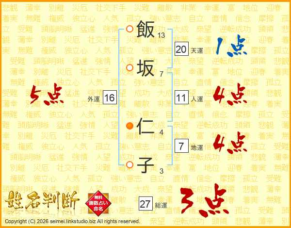 飯坂仁子さんの人運は11画の4点!