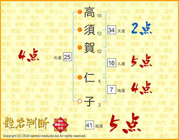 高(10画)須(12画)賀(12画) 仁(4画)子(3画)