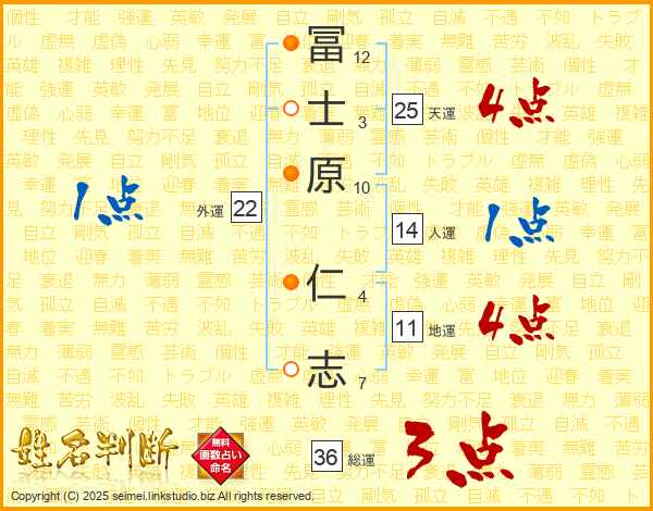冨(12画)士(3画)原(10画) 仁(4画)志(7画)