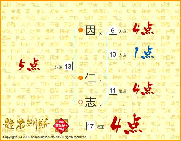 因仁志さんの総運は17画の4点!
