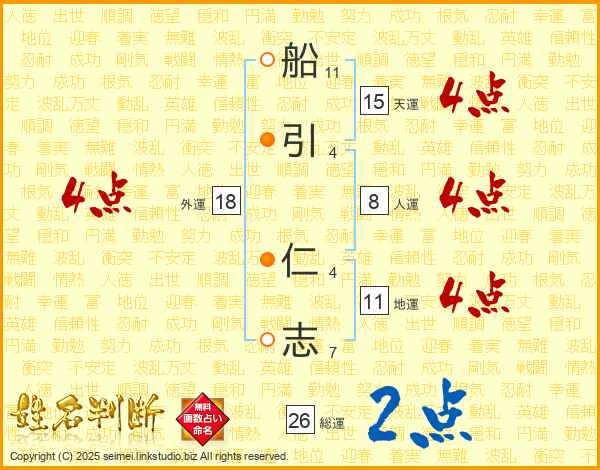 船(11画)引(4画) 仁(4画)志(7画)