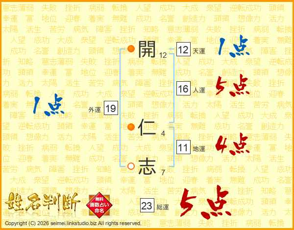 開(12画) 仁(4画)志(7画)