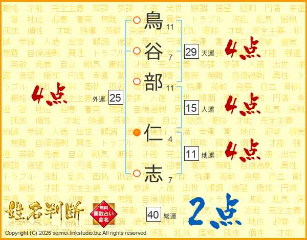 鳥谷部仁志さんの総運は40画の2点!