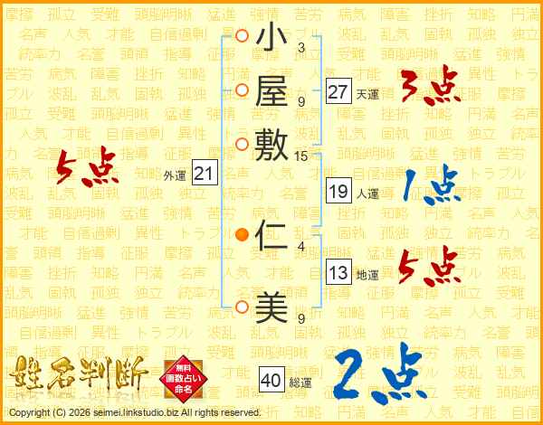 小屋敷仁美さんの総運は40画の2点!