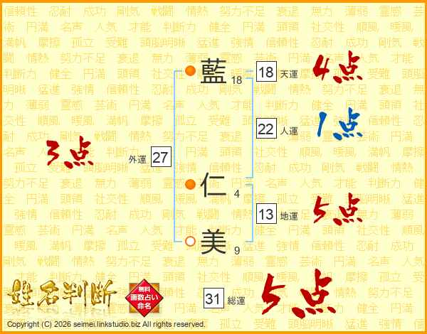 藍仁美さんの総運は31画の5点!