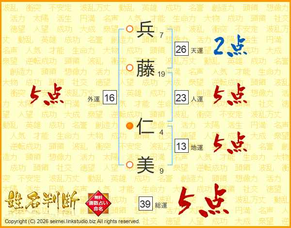 兵(7画)藤(19画) 仁(4画)美(9画)