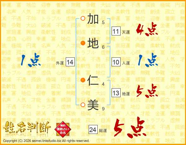 加地仁美さんの総運は24画の5点!