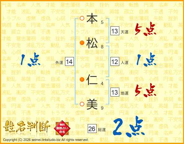 本松仁美さんの天運は13画の5点!