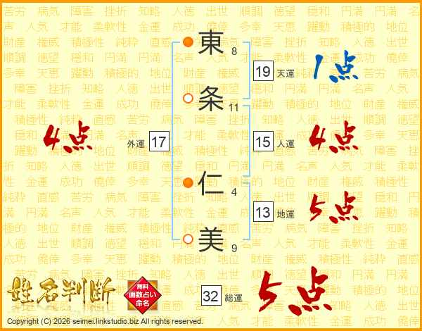 東条仁美さんの総運は32画の5点!