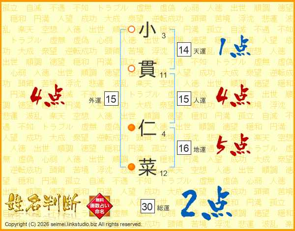 小貫仁菜さんの総運は30画の2点!